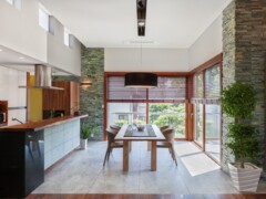 目黒区の高台にこの住宅は建っています。低層住居専用地域のため、周辺には緑豊かな庭...